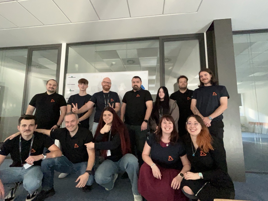 (This is a part of the Brno team right after our new fox merch arrived. And yes, we often get asked "That's a cool shirt, what brand is it?" We have one for you as well if you join our team. 😉)