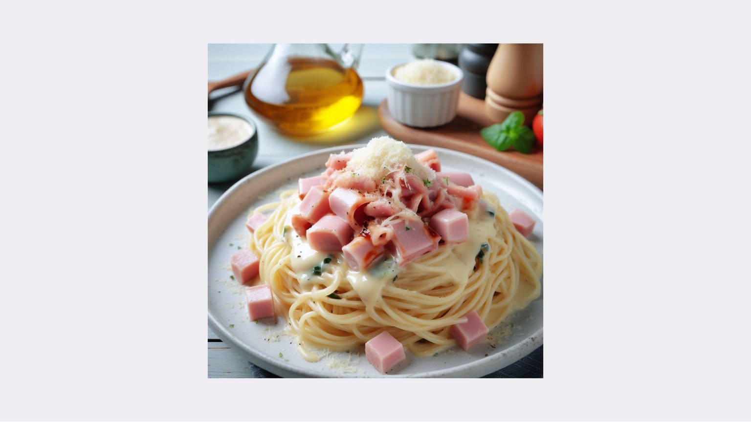 Špagety v tatarské omáčce s šunkou a parmezánem.