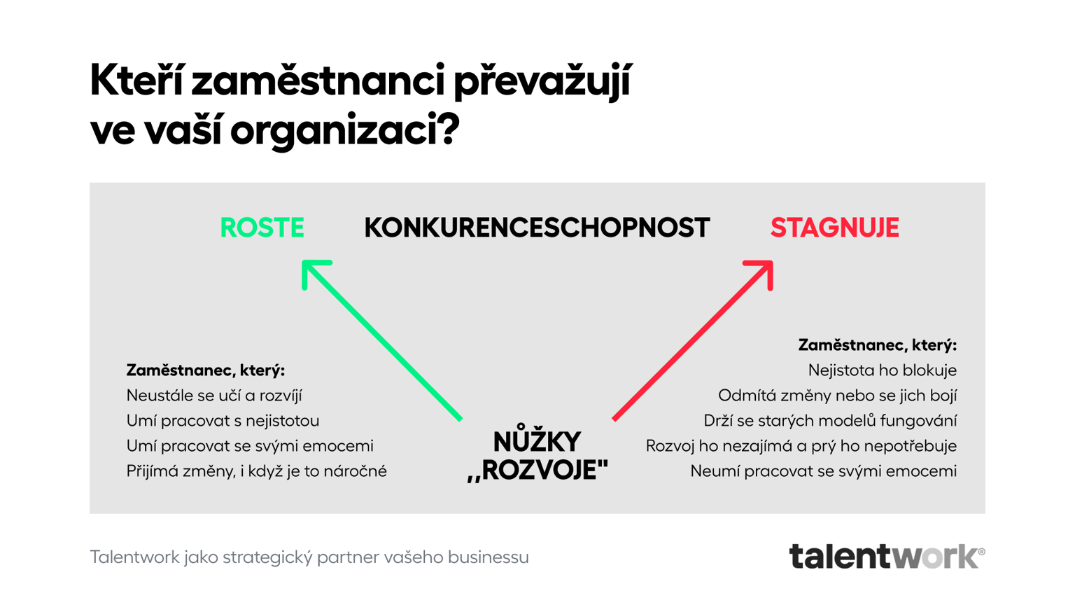 Leader má posouvat schopnosti i dovednosti ostatních, ještě lepší leader dokáže u lidí v týmu jejich talent rozpoznat a podle toho s kolegy pracovat. Proč se ve vedoucích pozicích hodí znát poznatky týkající se osobnosti lidí v týmu? Protože vám to třeba umožní: předvídat nebo dodatečně vysvětlovat jejich chování v různých situacích, hledat pro ně adekvátní způsob motivace, odhadovat jejich úspěšnost v různých funkcích nebo situacích, poznat sama sebe. A taky vám to při řízení týmu pomůže bránit se tzv. nůžkám “rozvoje".